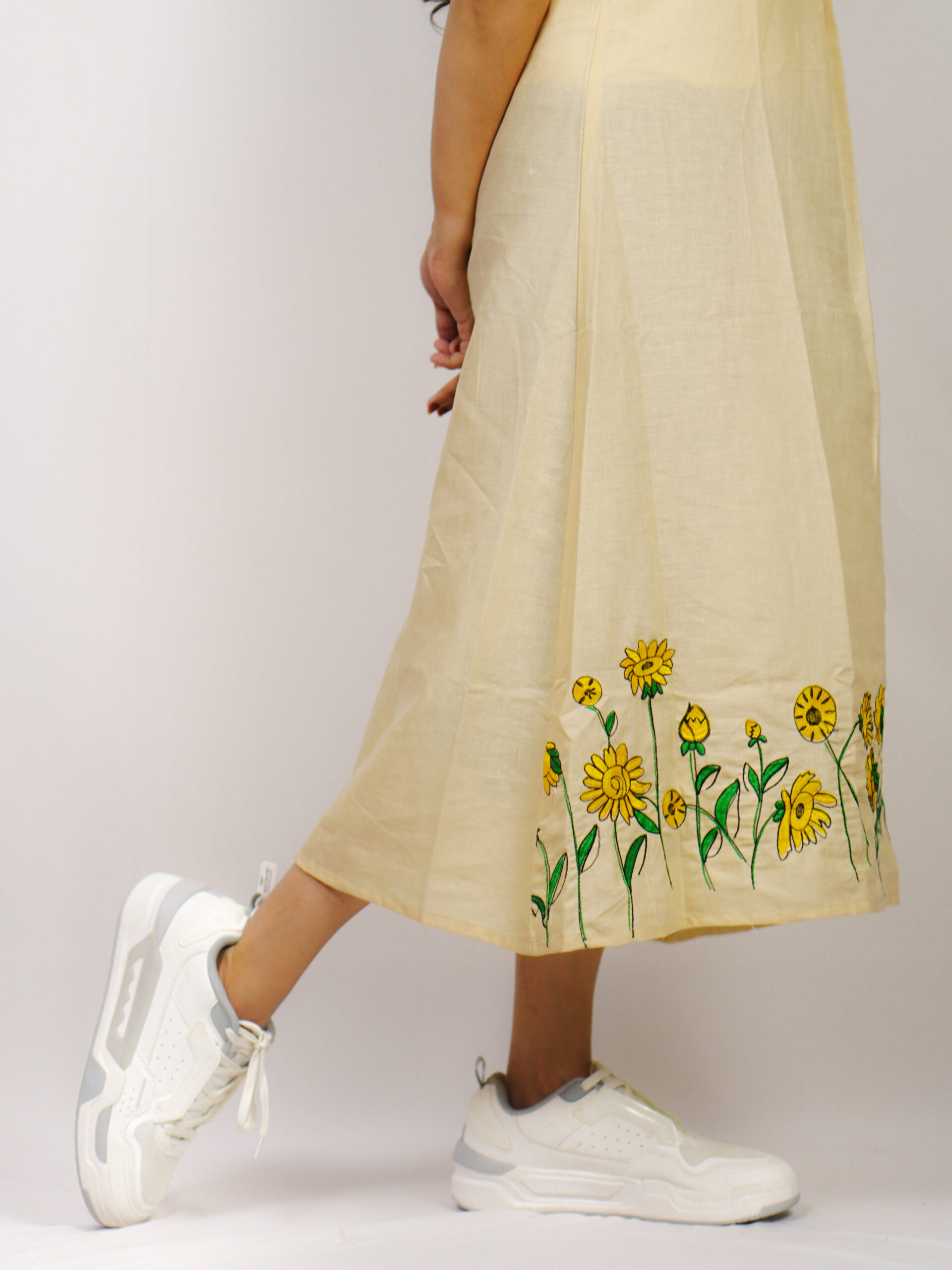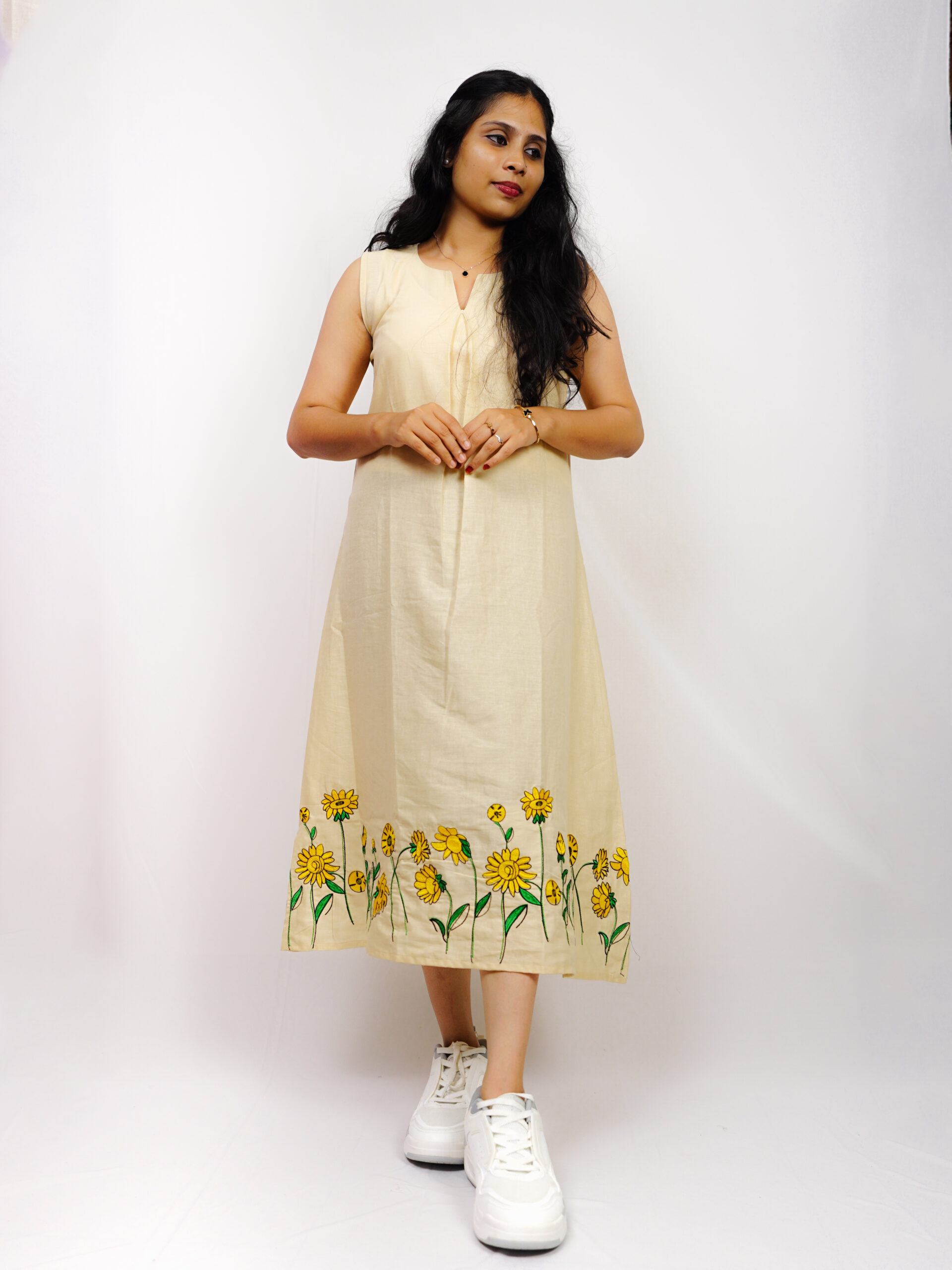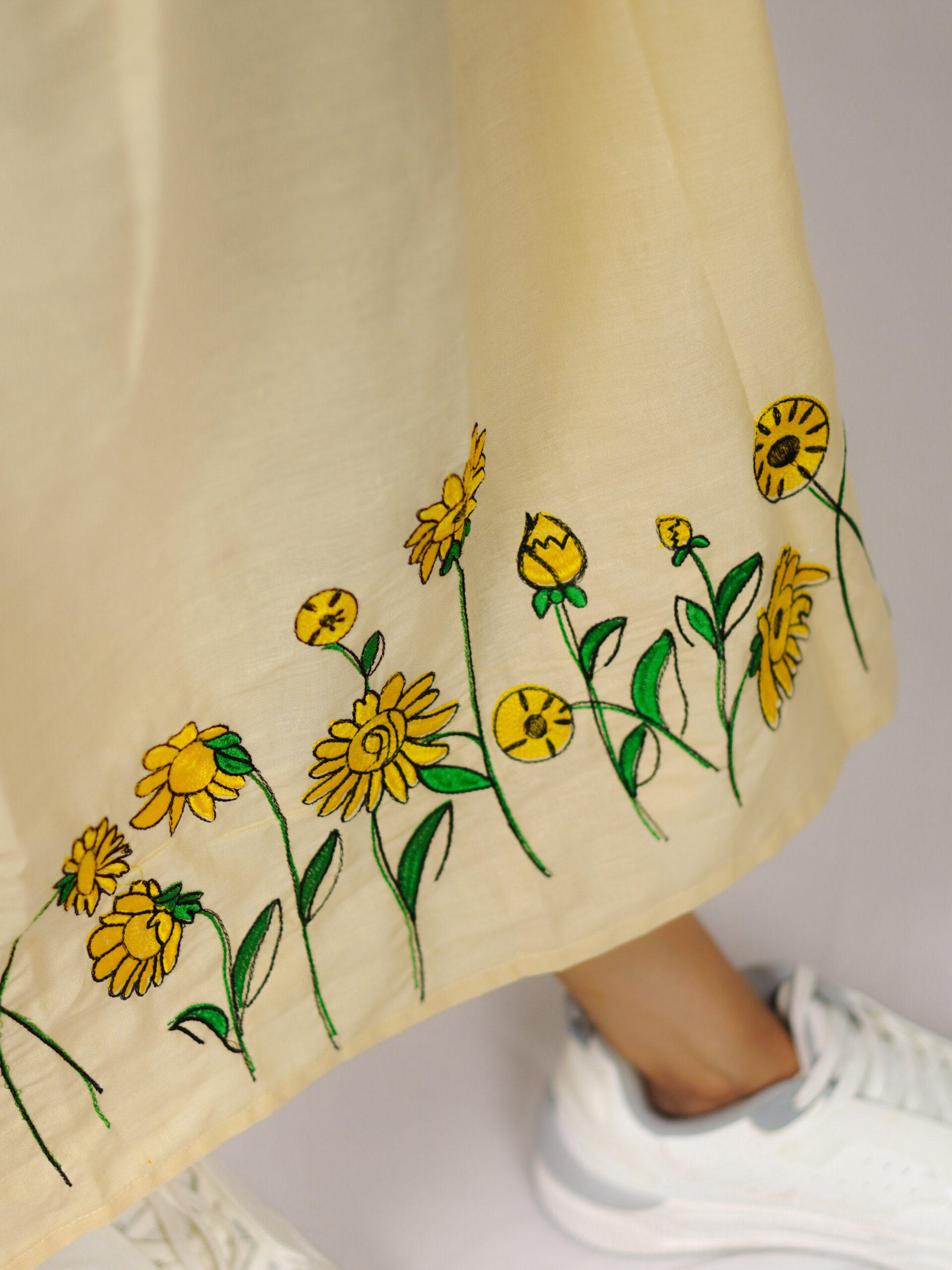 Sunflower Embroidery Sleeveless Top – Crafted from premium linen, the Sunflower Embroidery Sleeveless Top brings comfort and elegance together. Adorned with delicate sunflower embroidery, this unique design radiates warmth and charm — a perfect choice for those who love timeless, artistic style.
